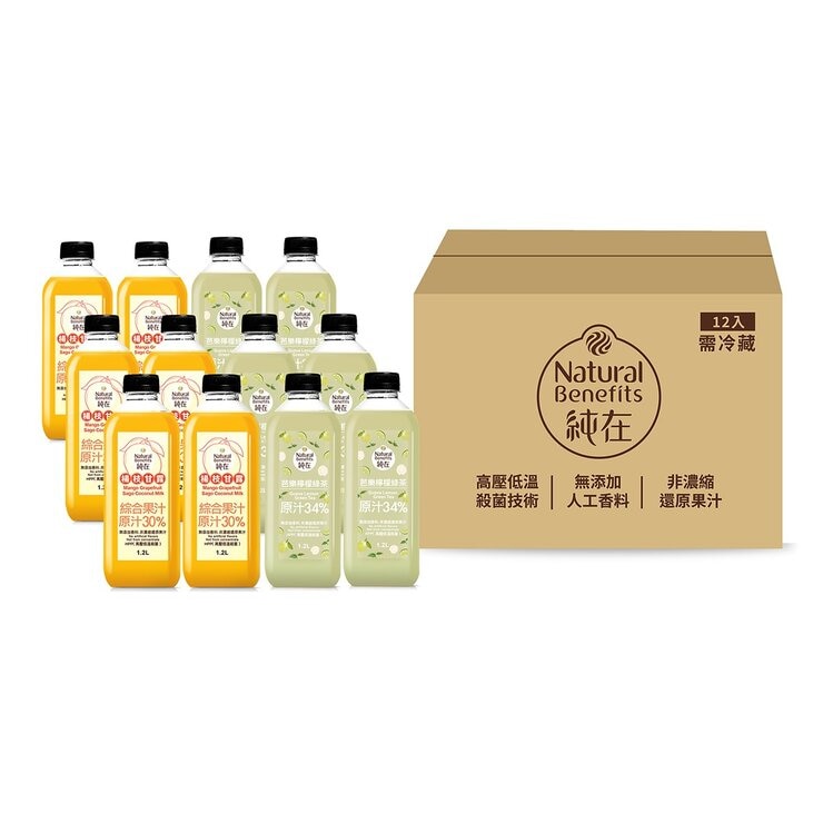 Natural Benefits Guava Lemon Green Tea & Mango Grapefruit Sago Coconut Milk 1.2 L X 12-Pack