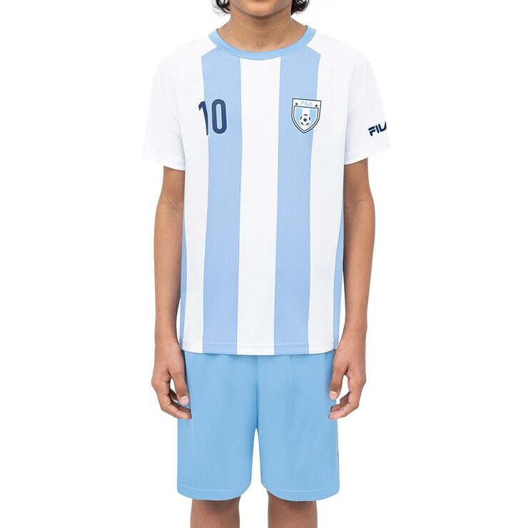 Fila 兒童足球短袖套組 白/藍 M