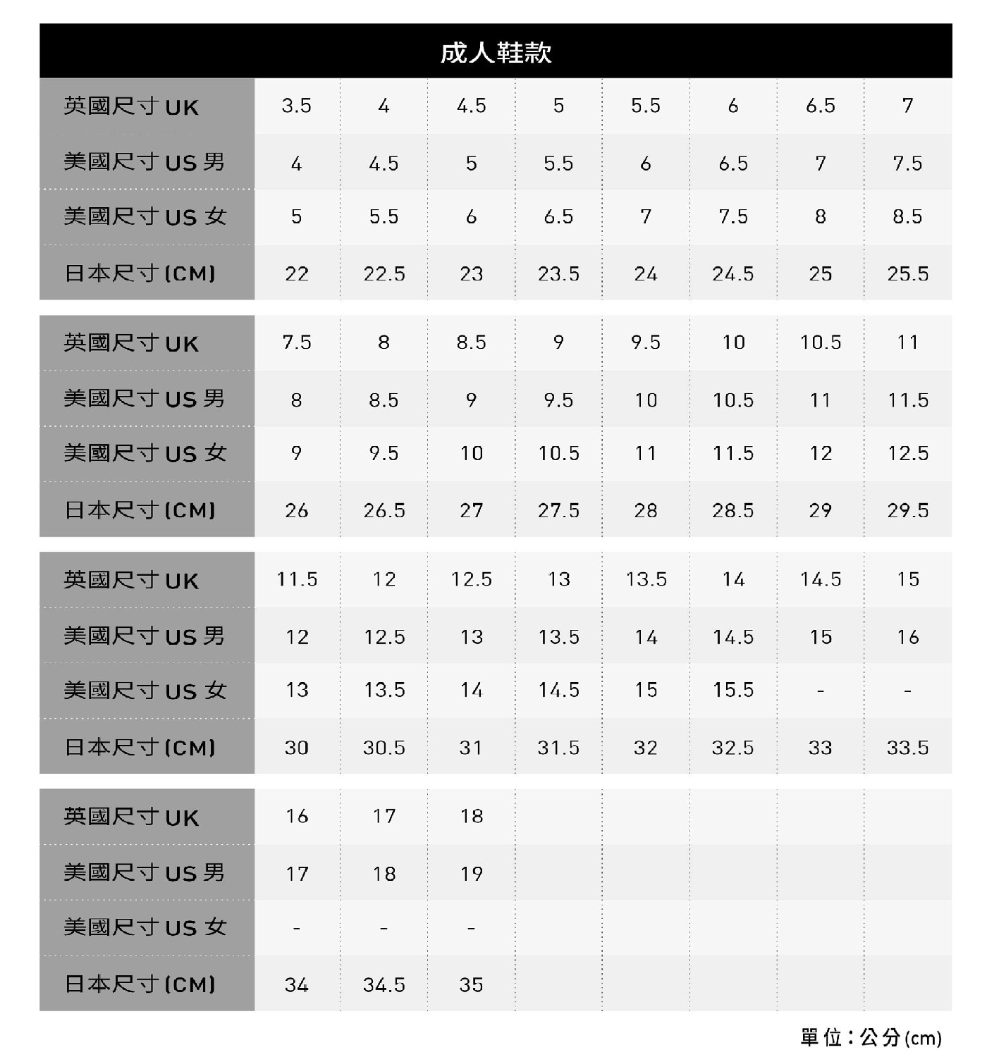 尺碼指南