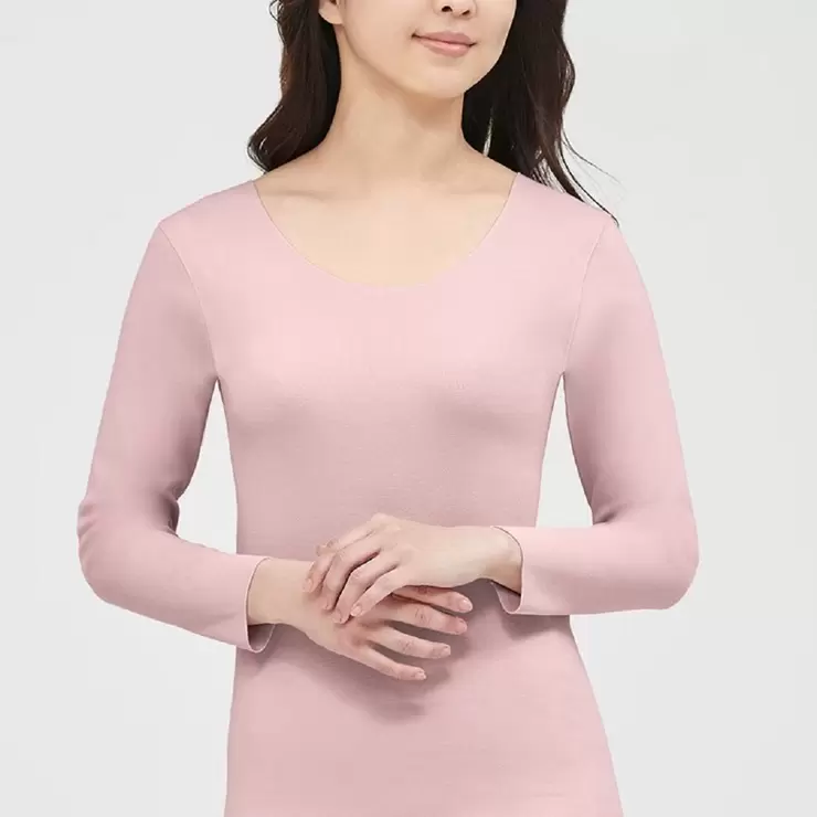 郡是 女刷毛發熱長袖衛生衣 粉紅 LL