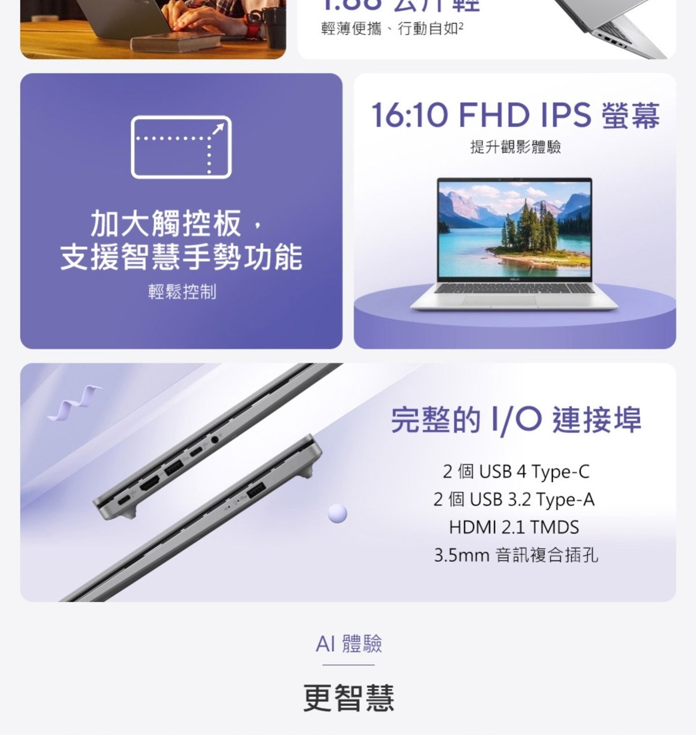- 商品名:ASUS Vivobook 16 16吋Copilot+ PC AI筆記型電腦