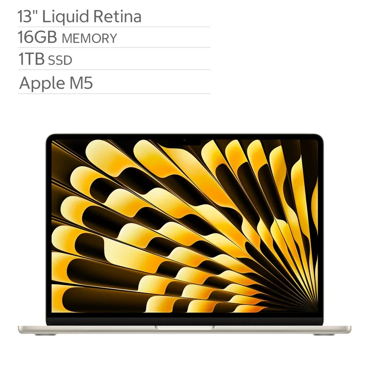 Apple MacBook Air 13 inch with M5 Chip 10 Core CPU 8 Core GPU 16GB 1TB SSD Starlight