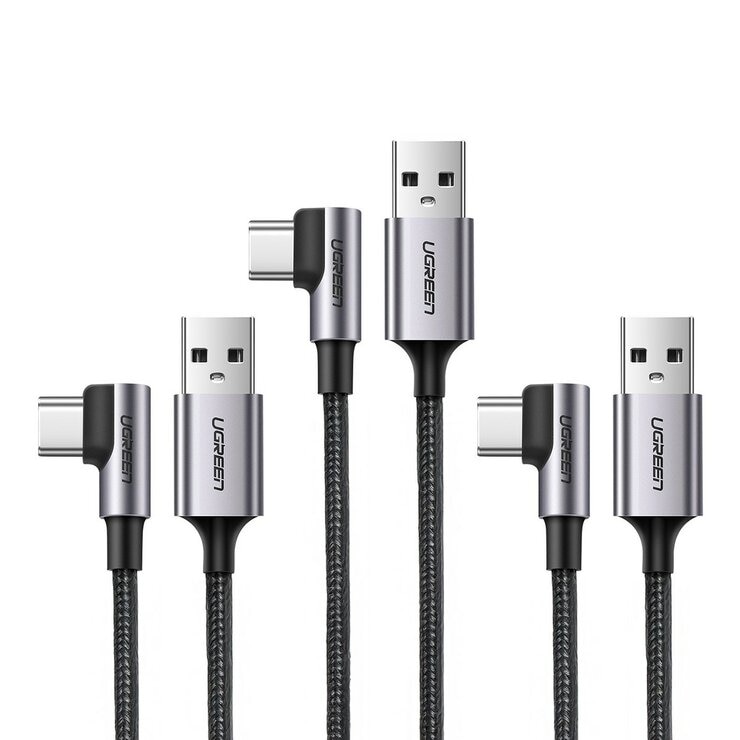 UGREEN Right Angle USB-A to USB-C Cable Space Gray [1 m] 3-Pack Set