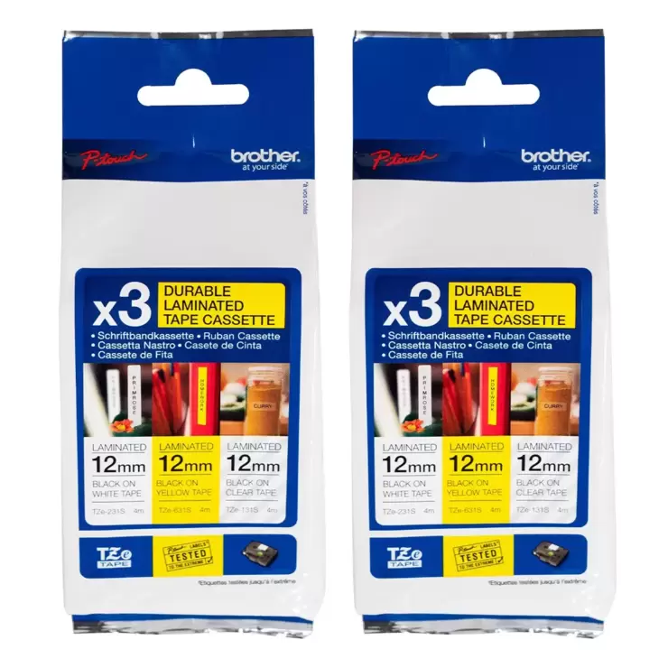 Brother TZe Durable Laminated Tape Cassette 3-Tape x 2-Pack