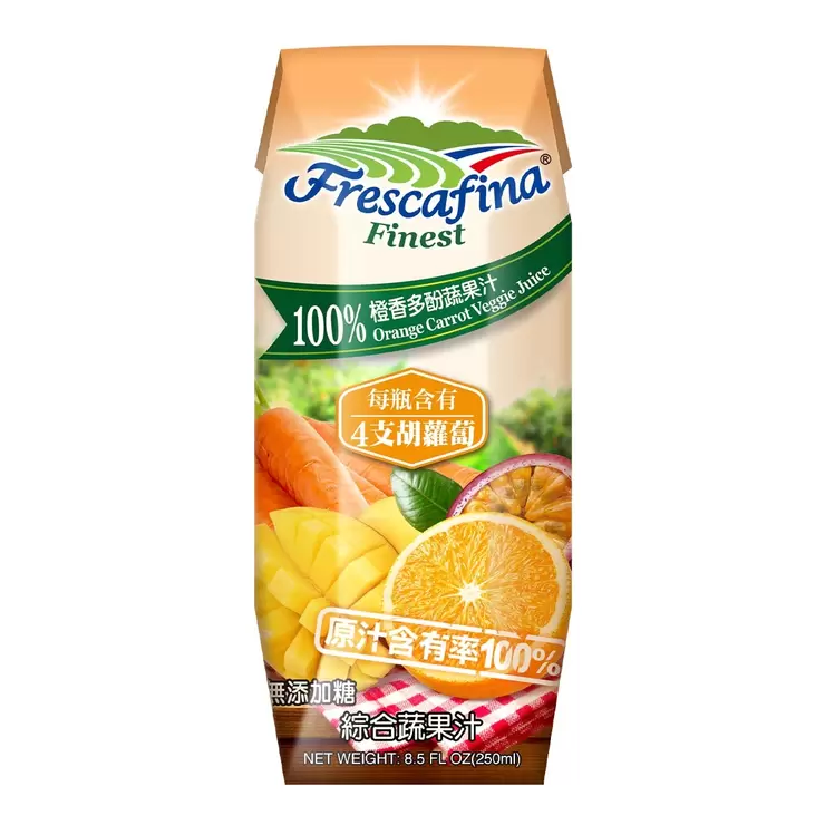 品名 : 嘉紛娜 100% 橙香多酚蔬果汁 250毫升 X 24入