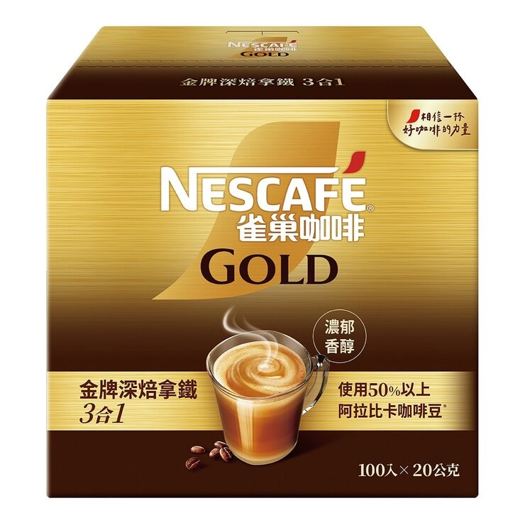 雀巢 金牌深焙拿鐵三合一 20公克 X 100入雀巢 金牌深焙拿鐵三合一 20公克 X 100入