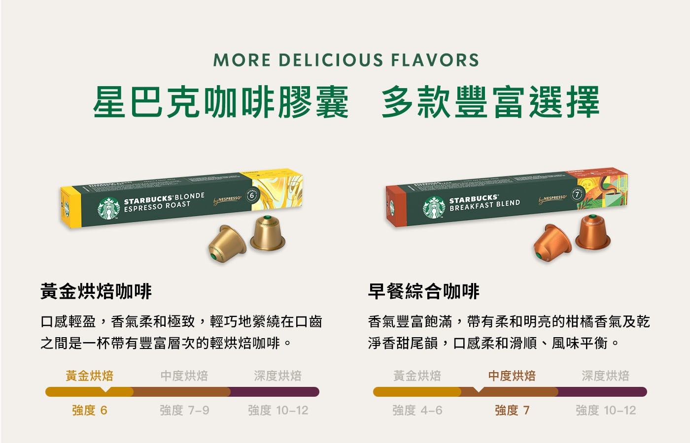 | 型號 | 星巴克 黃金烘焙咖啡膠囊 Blonde 星巴克 早餐綜合咖啡膠囊 Breakfast Blend |