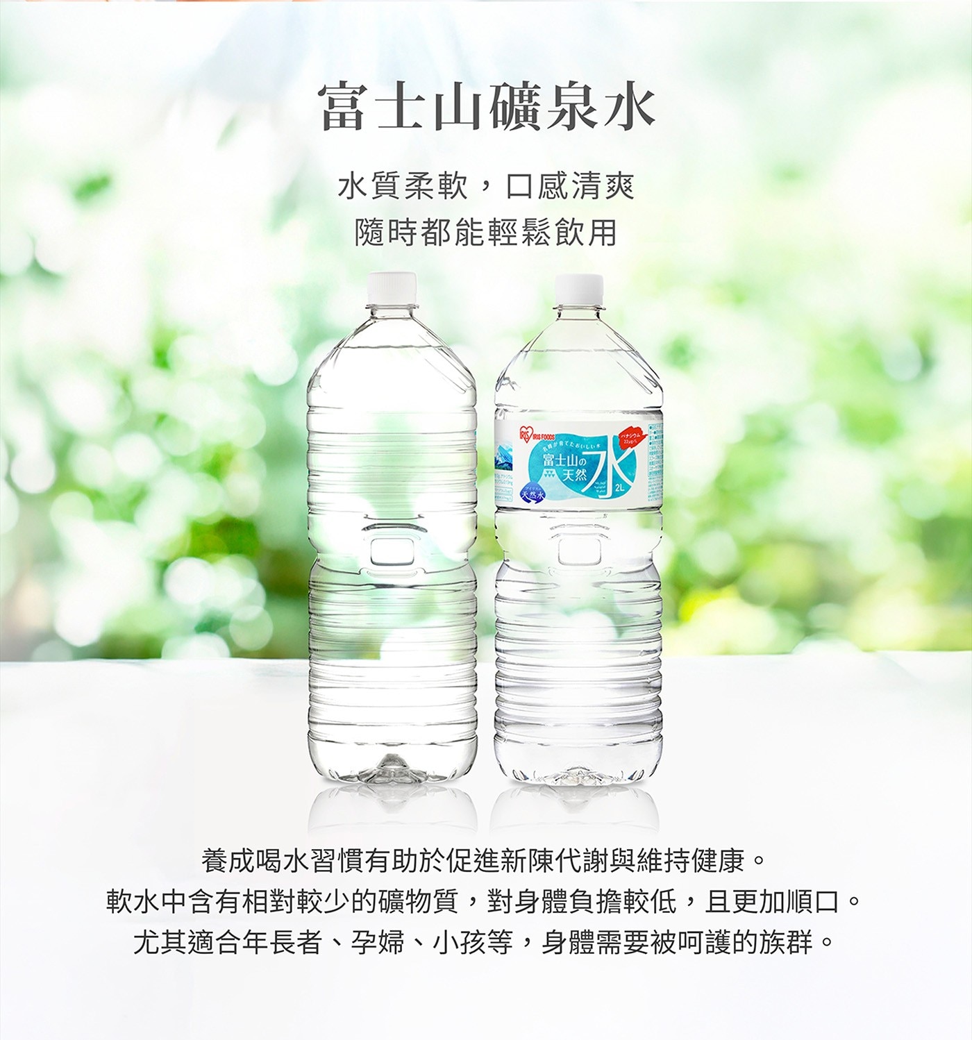 | 品名 | IRIS OHYAMA 富士山天然水 環保無標籤款 2000 毫升 X 9入 |
