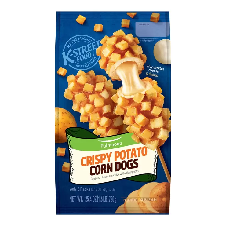 Pulmuone Frozen Potato and Mozzarella Corn Dogs 90 g X 8-Count