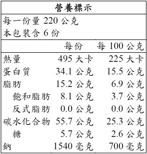 | 注意事項 | 加熱時間會因為加熱器具及產品解凍程度的不同而有所差異,本產品非供即食,應充分加熱。 |