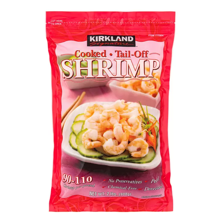 Kirkland Signature Frozen Cooked Tail-Off Shrimp 2 LBs / 908 g, 90-110-Count / LB