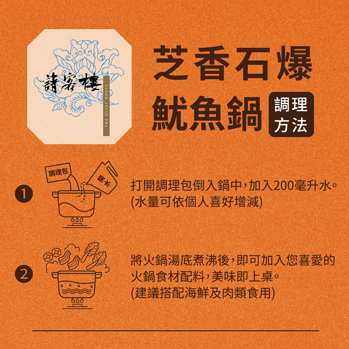 品名 : 寒舍集團 請客樓 芝香石鍋爆魷魚湯底 1200公克 X 8入
