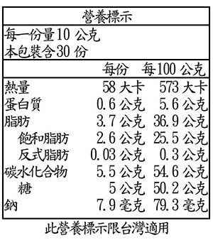 | 過敏原資訊 | 本產品含有麩質穀物,乳製品,大豆製品,食物過敏者請留意 |
