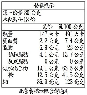 過敏原資訊 : 本產品含麩質穀物、大豆、牛奶製品,食物過敏者請留意