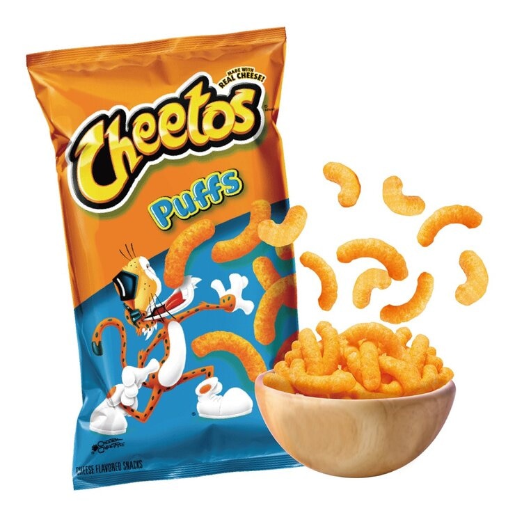 - 風靡全球奇多Cheetos品牌,泡芙條狀造型,口感酥脆多層次,超濃郁起司香氣豐富