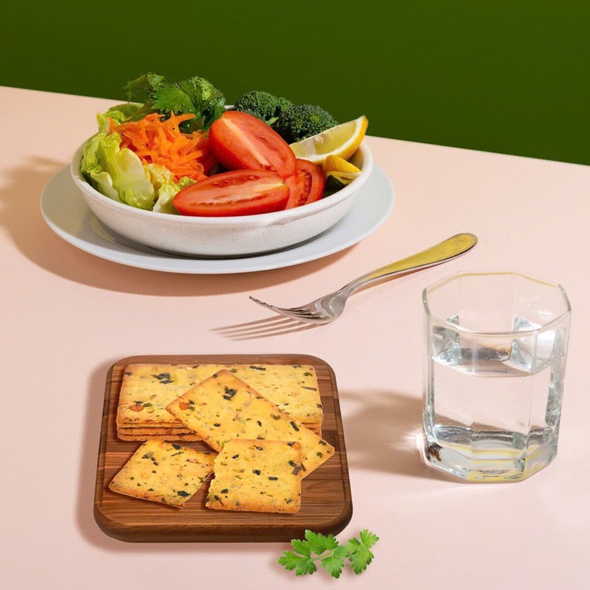| 成分 | 麵粉、棕櫚油、糖、乾混合蔬菜(胡蘿蔔、白芝麻、黑芝麻、海帶、蔥、菠菜、高麗菜、椰子片、芫荽、大蒜)、聚糊精、全脂奶粉、起酥油[棕櫚油和棕櫚硬脂油、脂肪酸甘油酯、抗氧化 劑(混合濃縮生育醇)] 、鹽、膨脹劑(碳酸氫鈉、碳酸氫銨)、大豆卵磷脂、酵母萃取物、粘稠劑(碳酸鈣)、芝麻油、混合香料(香莢蘭醛、炸蔥香料)、β-胡蘿蔔素、偏亞硫酸氫鈉。 |