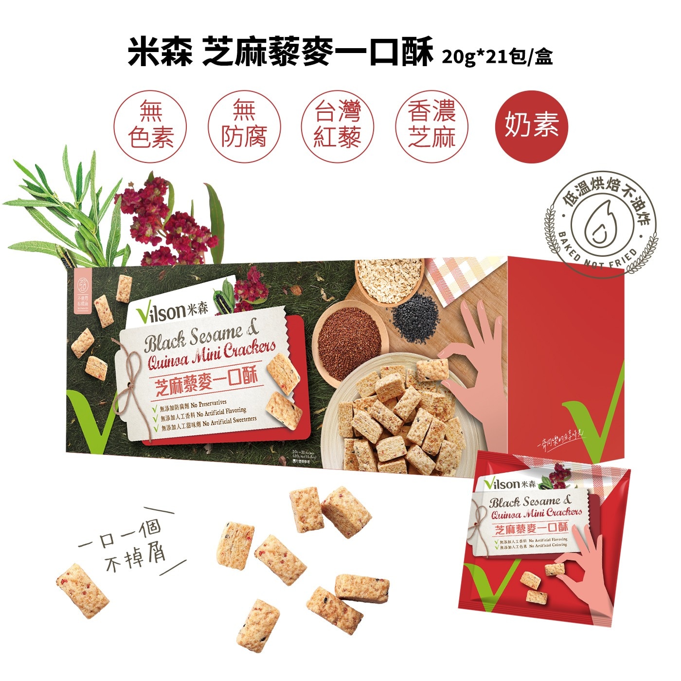 | 品名 | 米森 芝麻藜麥一口酥 20公克 X 21包 X 2盒 |