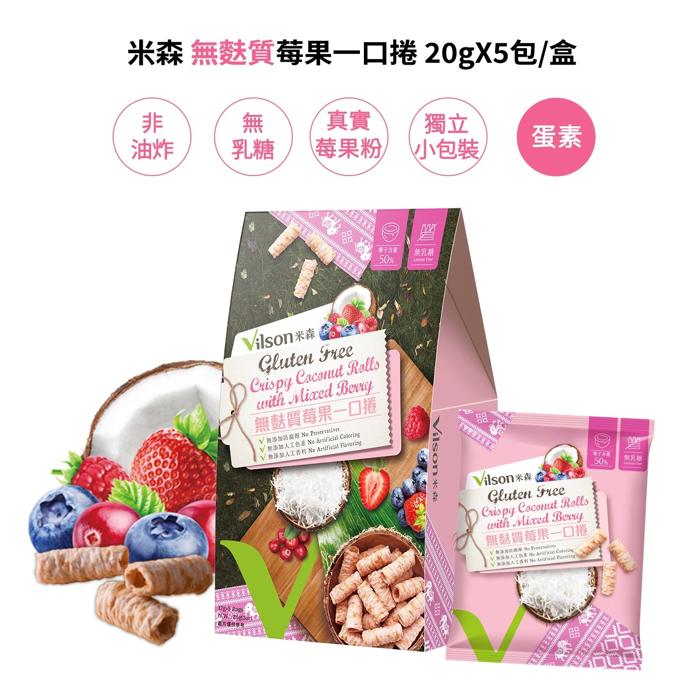 | 品名 | 米森 無麩質莓果一口捲 17公克 X 5包 X 6盒 |