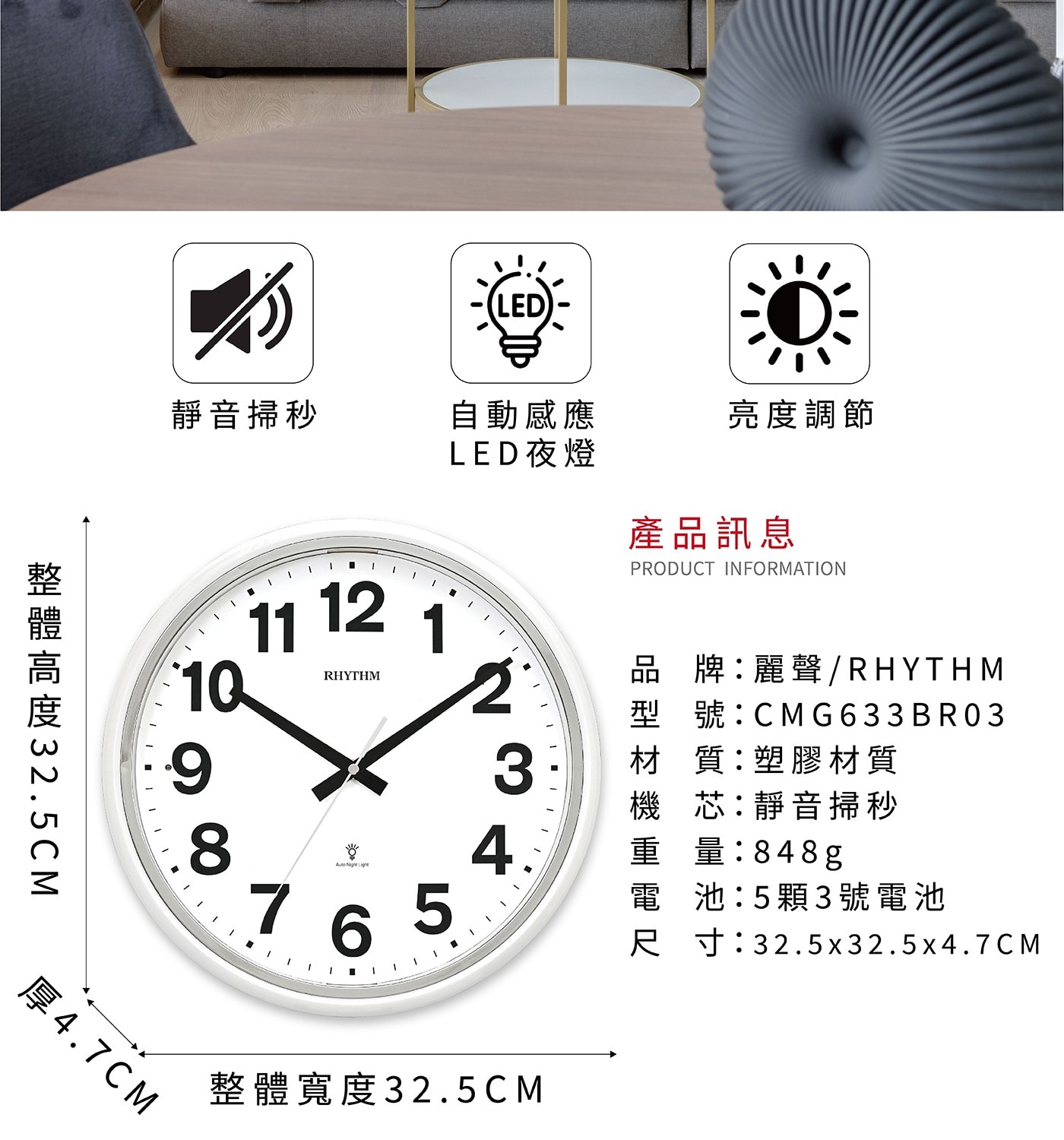 | 品名 | 麗聲鐘自動夜燈掛鐘 #CMG633BR03 |