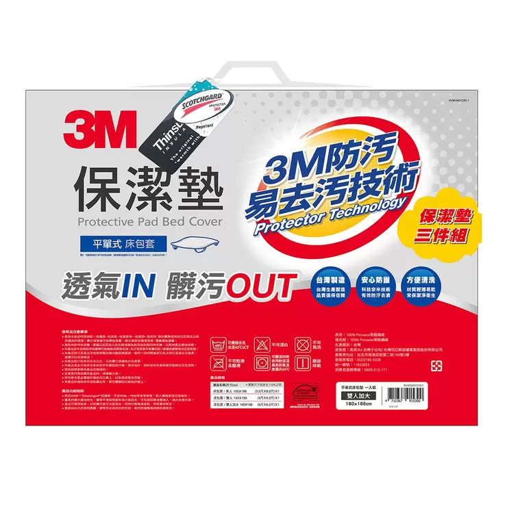 3M 平單式雙人加大保潔墊 3件組 180公分 X 186公分 X 35公分