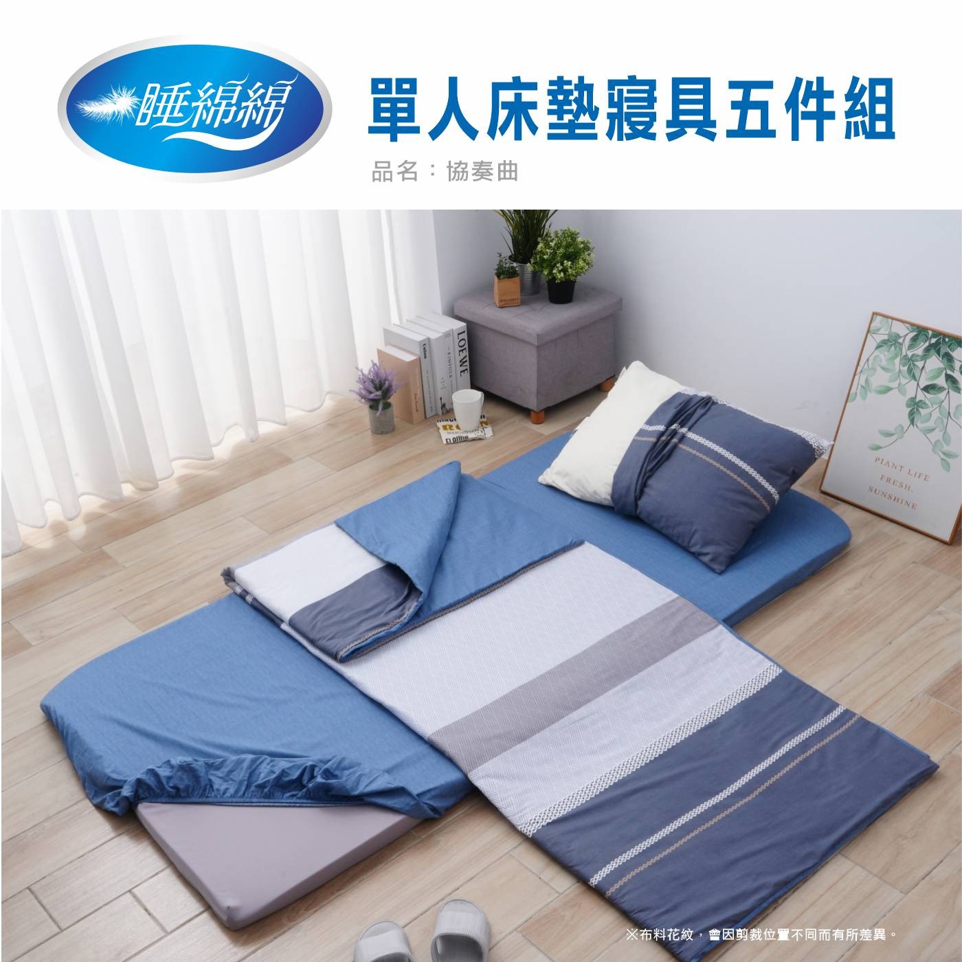 睡綿綿 單人床墊寢具 5件組 91公分 X 188公分 協奏曲睡綿綿 單人床墊寢具 5件組 91公分 X 188公分 協奏曲