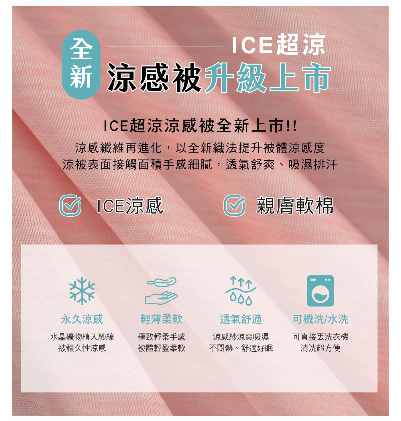 La Belle 素色涼感被 150公分 X 200公分 柔粉