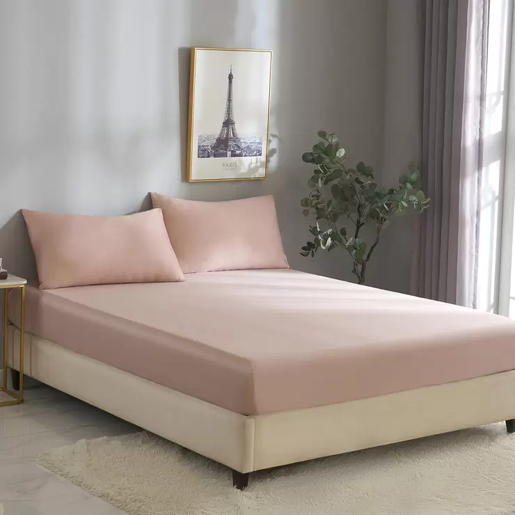 Don Home 萊賽爾素色雙人特大床包枕套三件組 182公分 X 212公分 藕粉