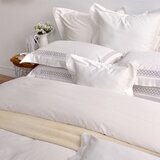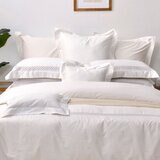 La Belle 雙人特大300織長絨棉刺繡被套床包4件組 方圓舒曲 珍珠白