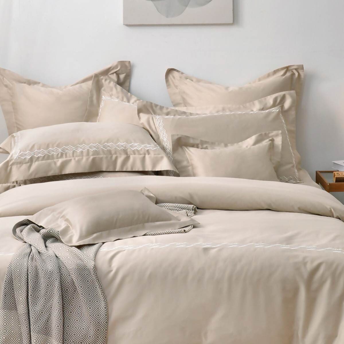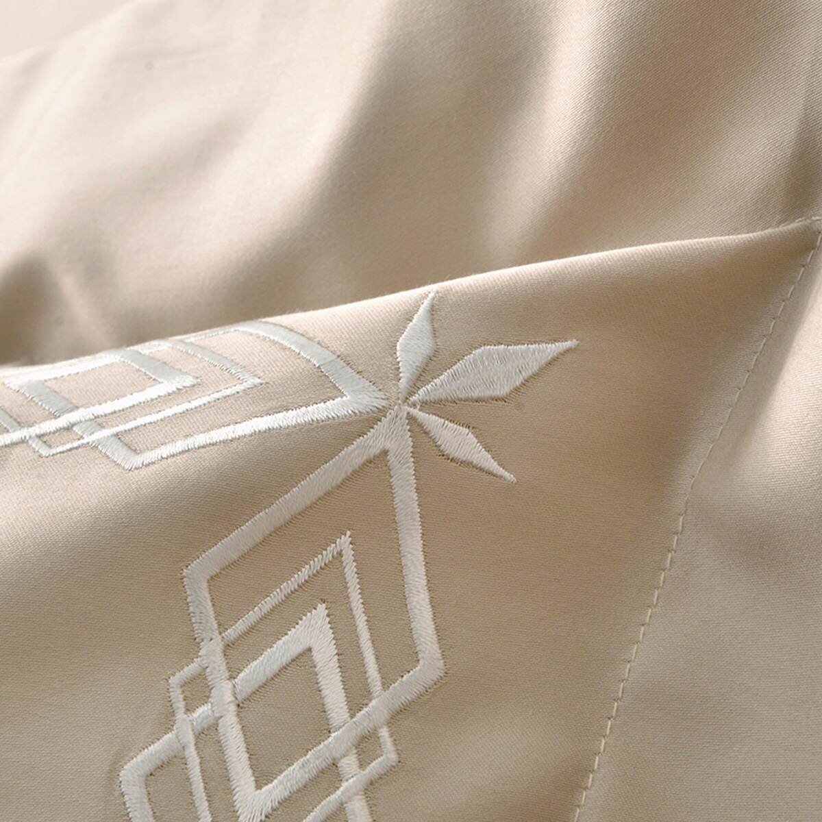 La Belle 300 Thread Count 100% Cotton Embroidered 4-Piece Set 180 cm X 186 cm Rhombus Apricot