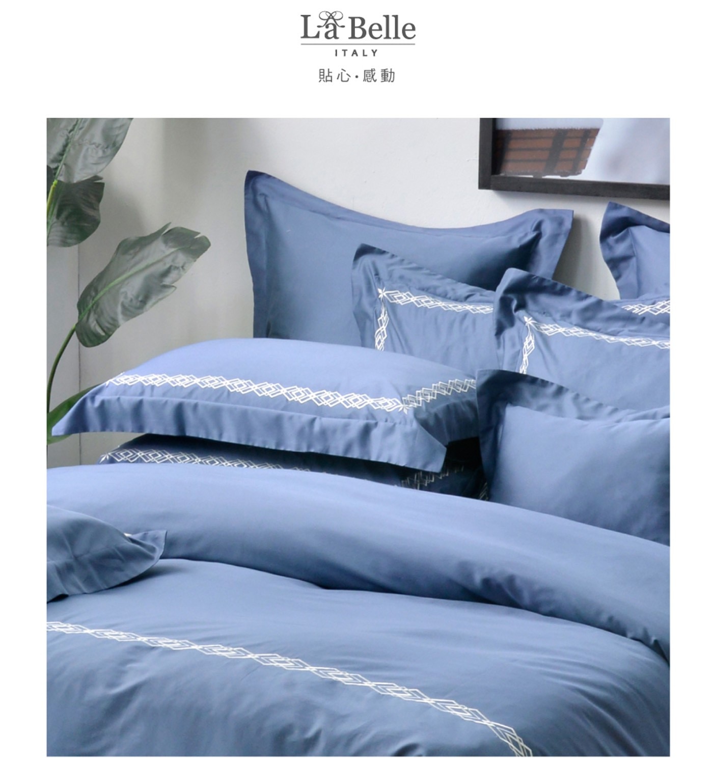 | 品名 | La Belle 雙人特大300織長絨棉刺繡被套床包4件組 閃耀稜光 午夜藍 |