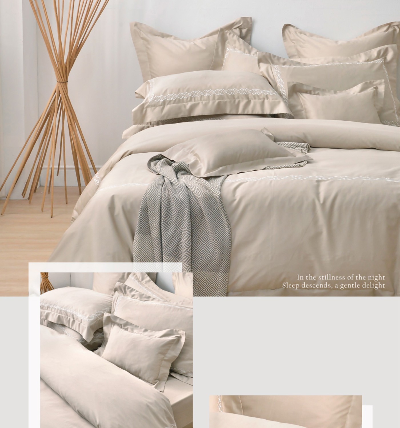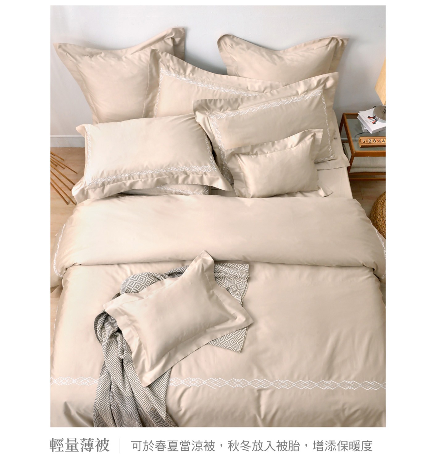 | 內容物 | 床包 X 1 被套 X 1 歐式壓框枕套 X 2 附原廠收納袋 |