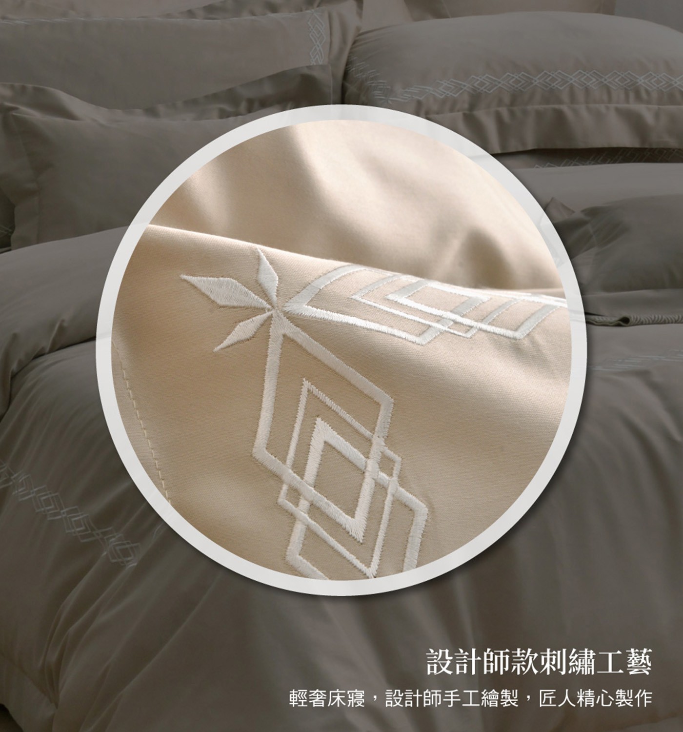 La Belle 雙人特大300織長絨棉刺繡被套床包4件組 180公分 X 210公分 閃耀稜光