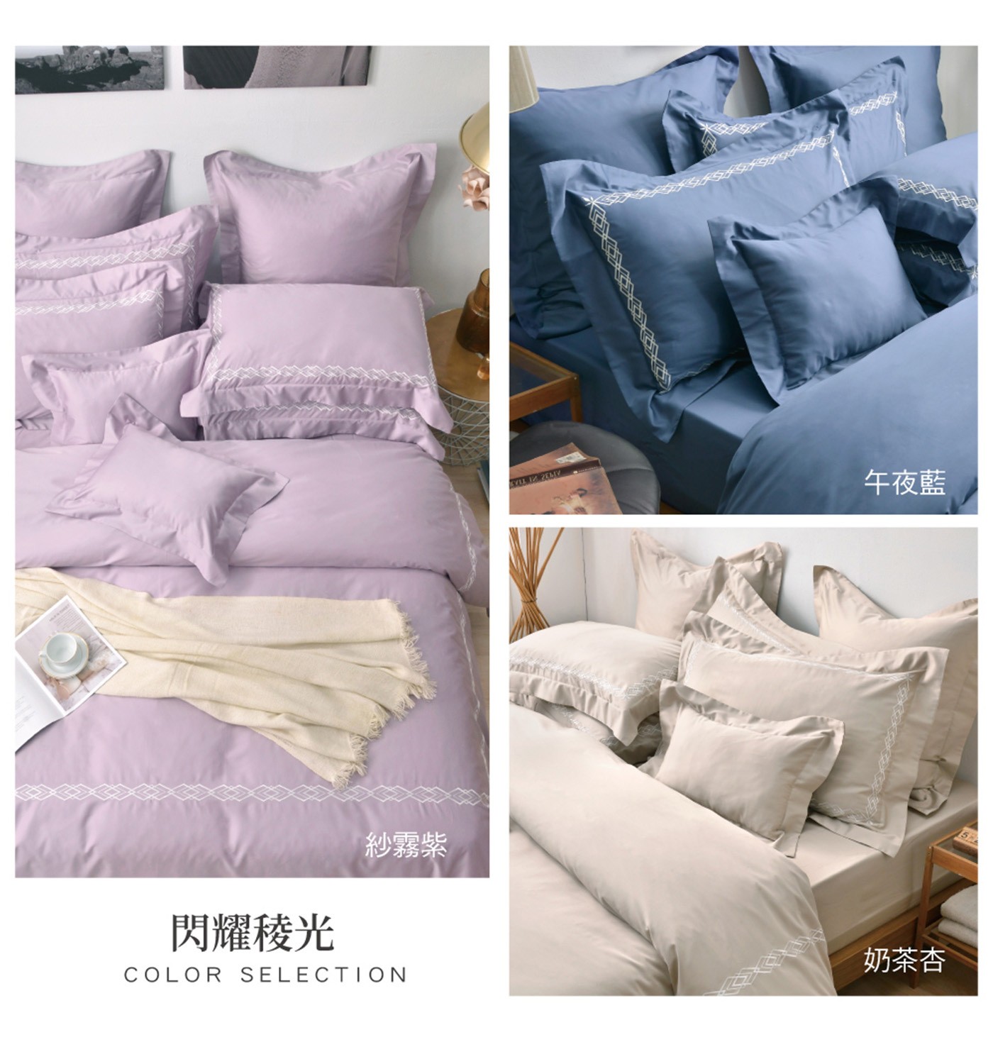 | 品名 | La Belle 雙人特大300織長絨棉刺繡被套床包4件組 閃耀稜光 |