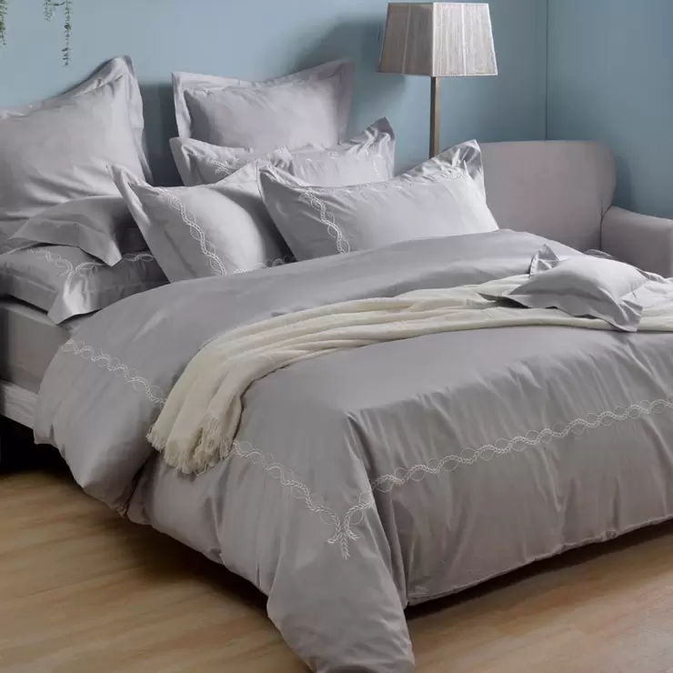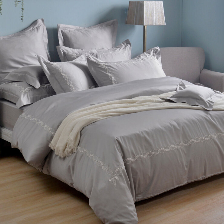 La Belle 雙人加大300織純棉刺繡被套床包4件組 180公分 X 186公分 藤蔓款