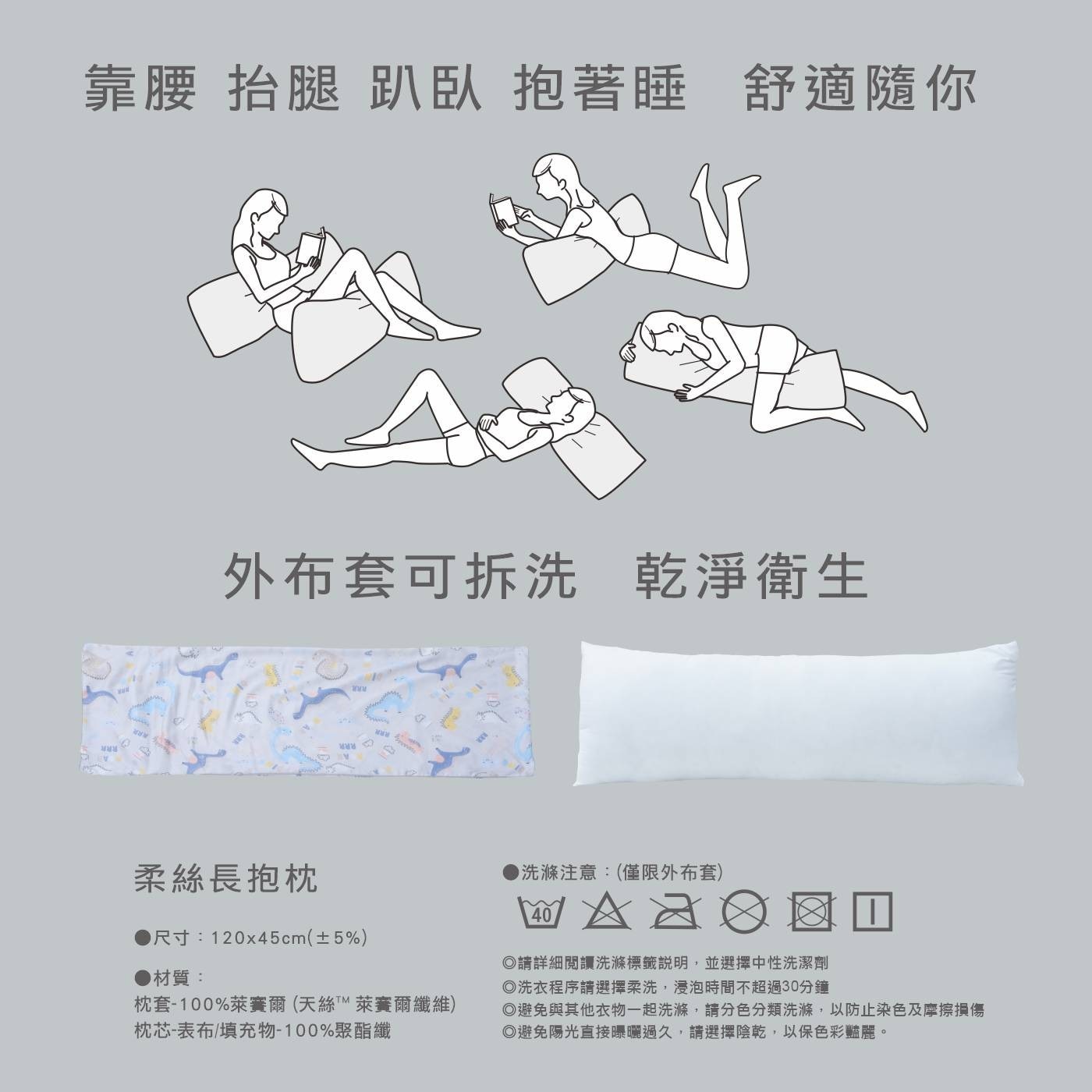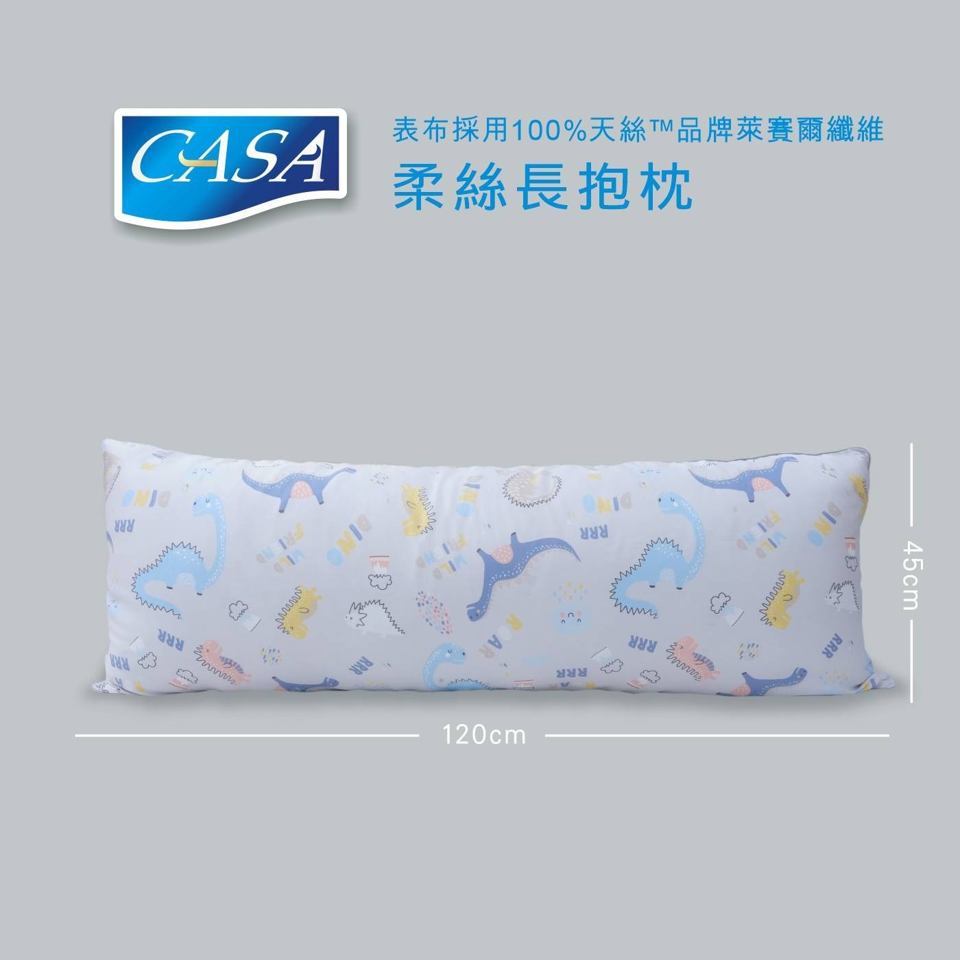 品名 | CASA 萊賽爾長抱枕 恐龍 45公分 X 120公分 |