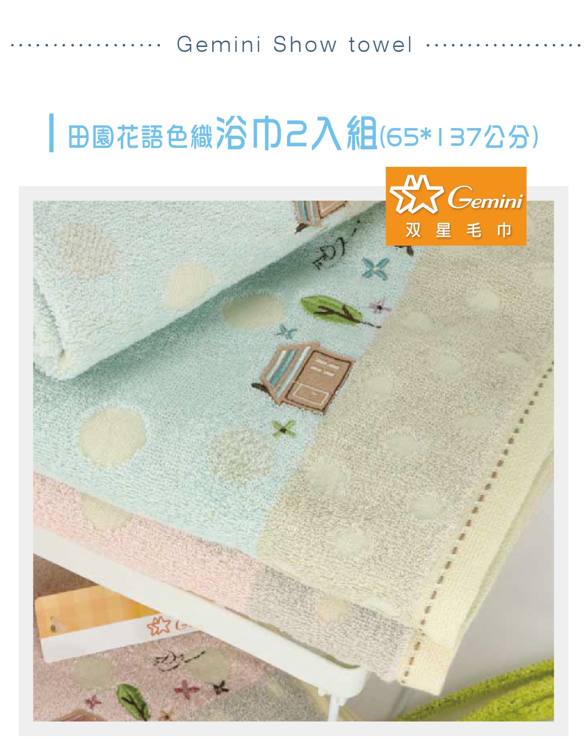 | 品名 | Gemini 田園花語色織浴巾 2入組 65公分 X 137公分 |