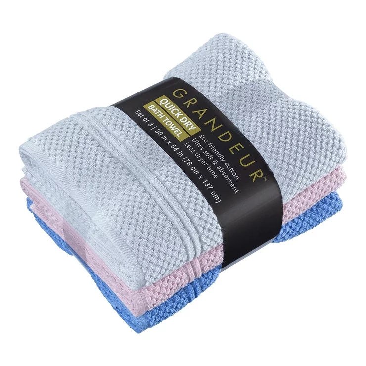 Grandeur 快乾浴巾 3入組 76公分 X 137公分 灰/粉/淺紫
