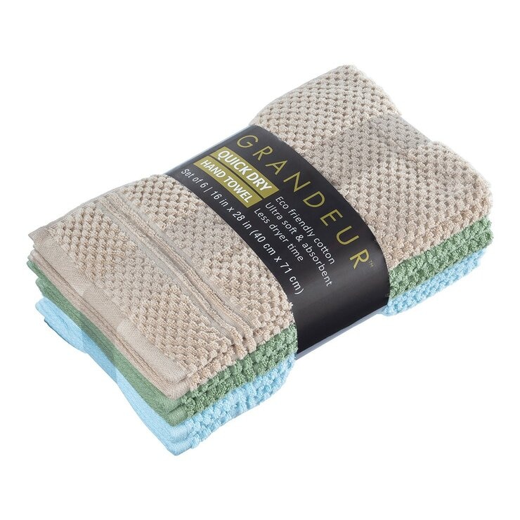 Grandeur Quick Dry Hand Towel 6-Piece 40 cm X 71 cm Light Gold / Green / Light Blue