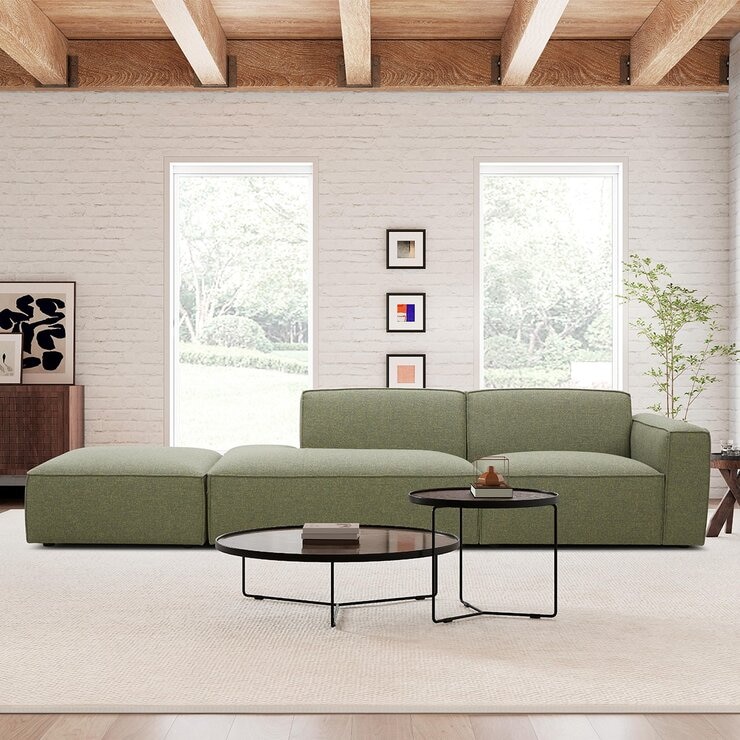 Aiden & Ivy 布面可移動式沙發附腳凳 綠