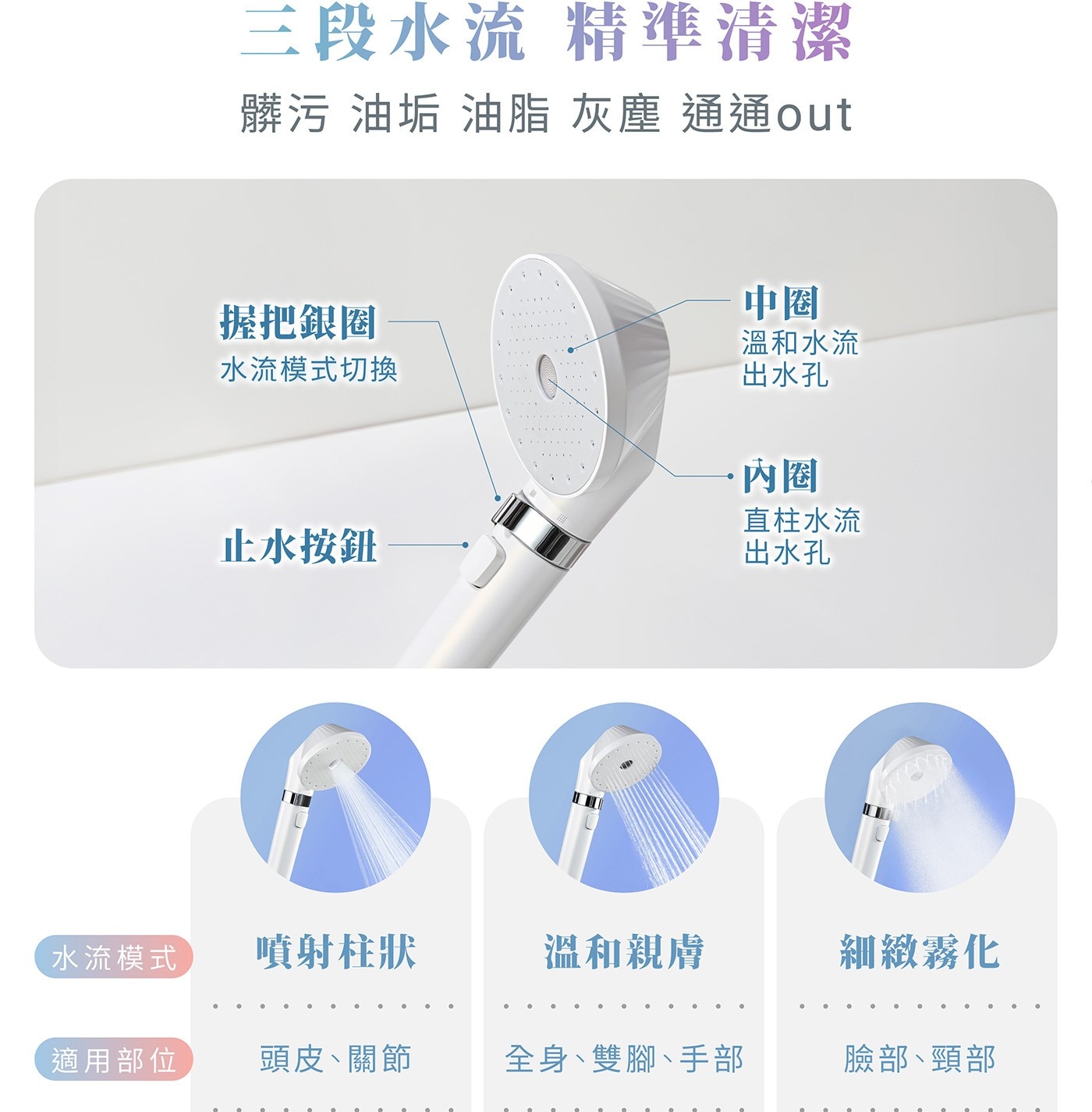 根據喜好進行3種水流調節模式