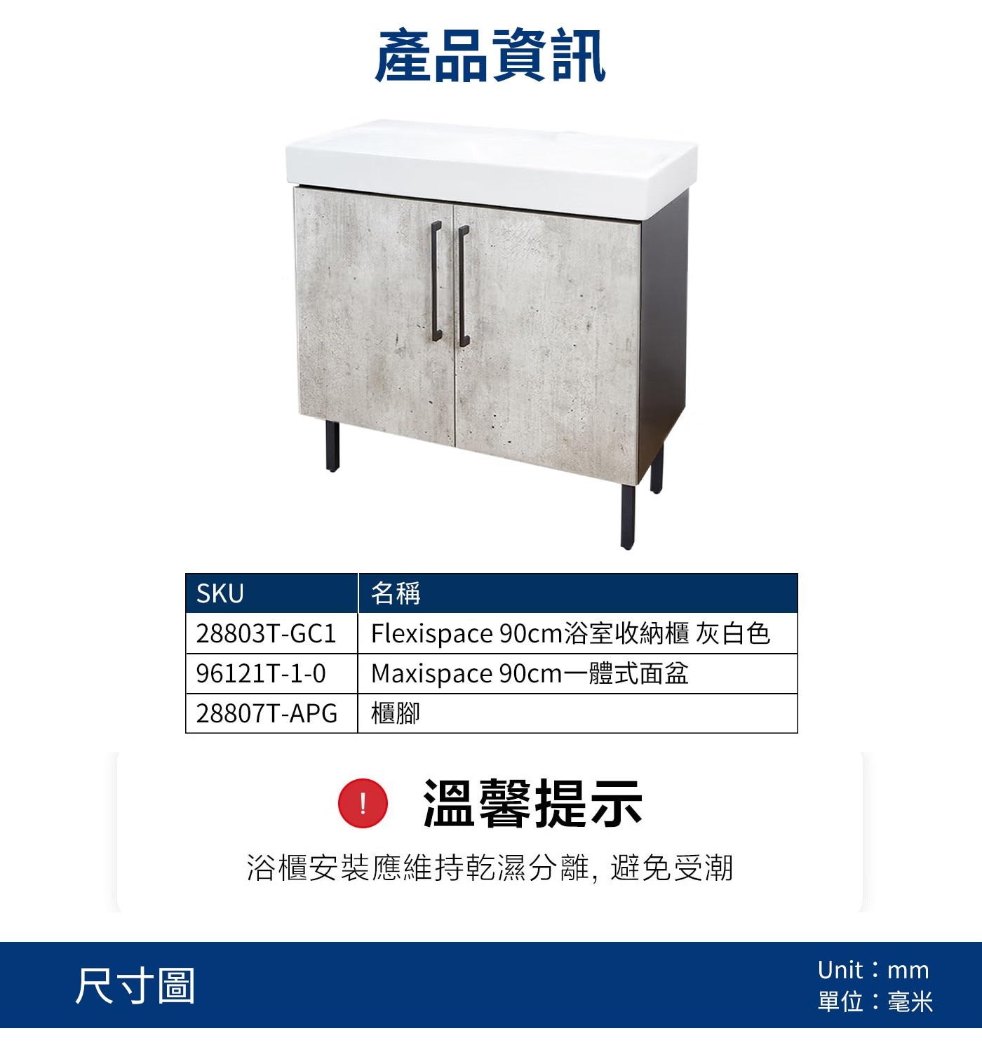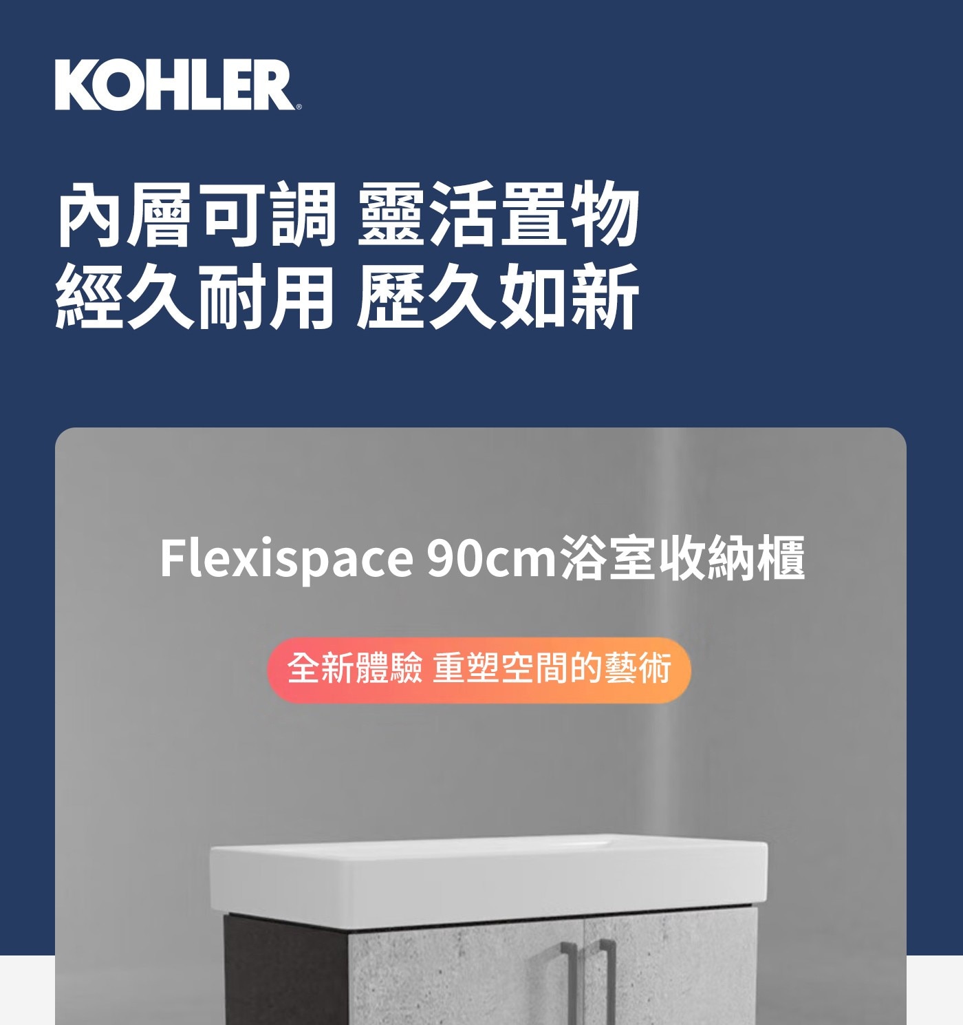 | 品名 | Kohler Flexispace 90公分 浴室收納櫃組 灰白色 |