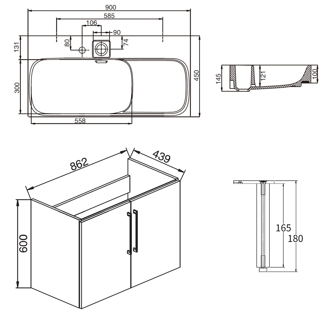 | 商品尺寸 | 面盆:長 90公分 X 寬 45公分 X 高 14.5公分 浴櫃:長 86.2公分 X 寬 43.9公分 X 高 60公分 支撐腳: 長 18公分 X 寬 8公分 X 高 8公分 |