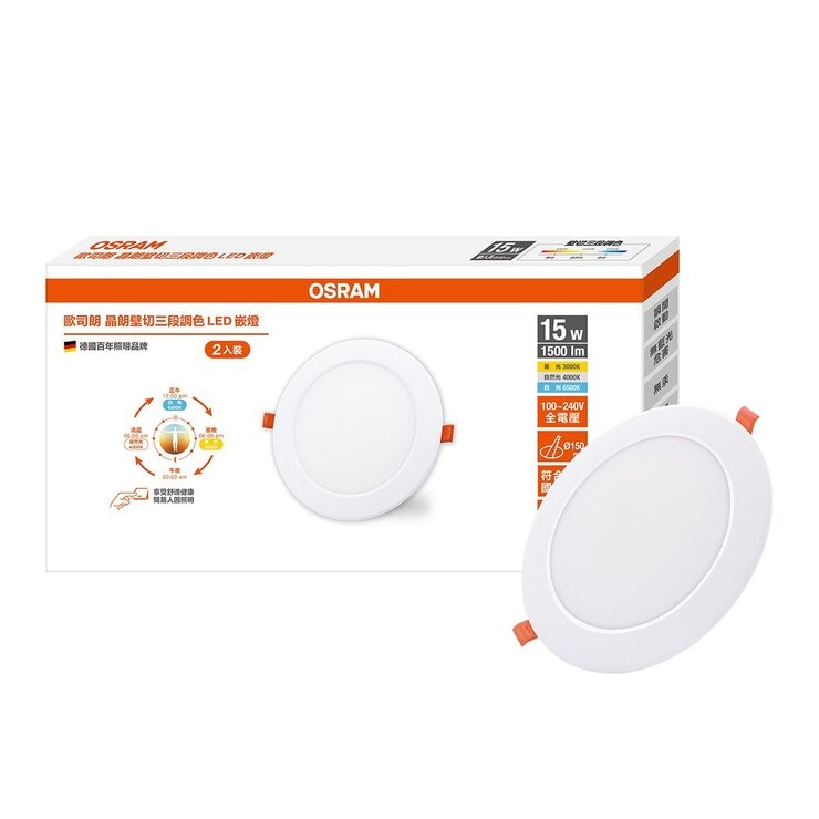 歐司朗 晶朗 15W 壁切三段調色 LED 嵌燈 2入