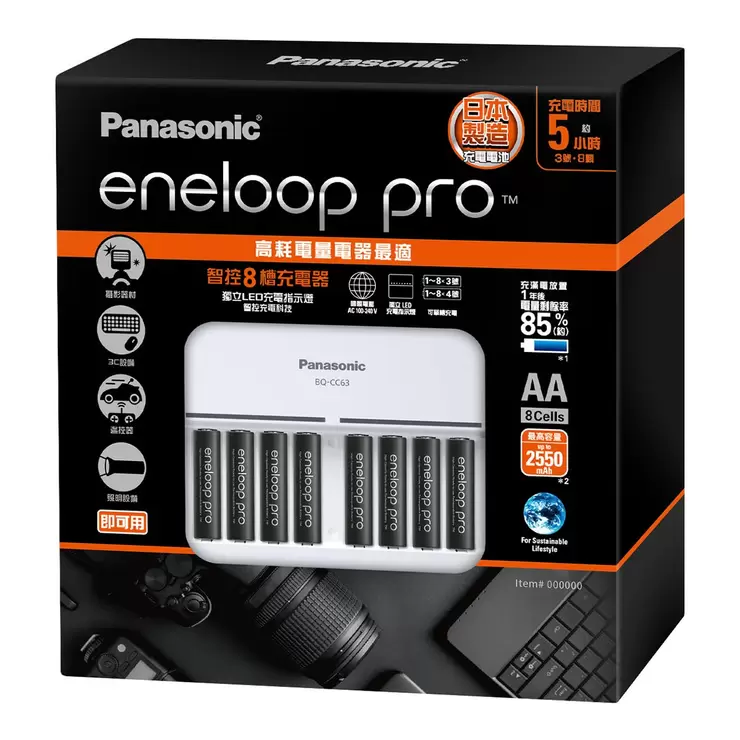 品名 : Panasonic eneloop pro 8槽充電組套裝 K-KJ63HC80TW