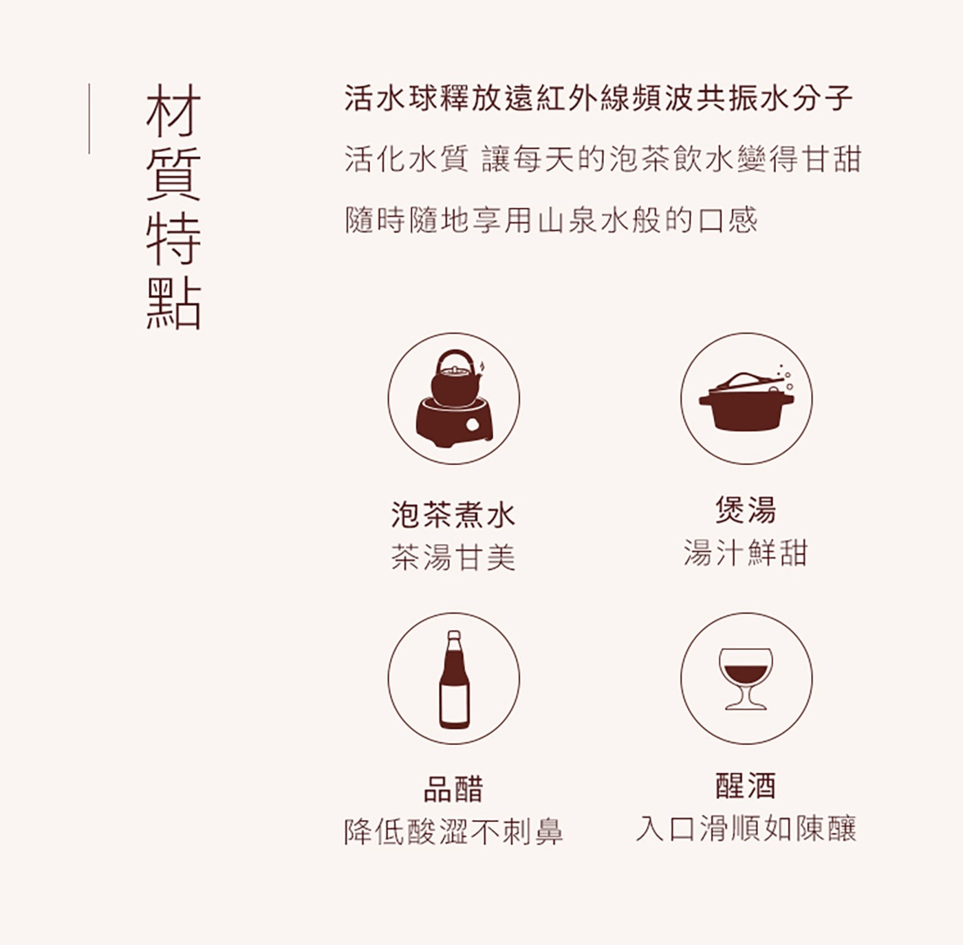 | 內容量/入數 | 茶壺 X 1、茶杯 X 6、茶海 X 1、活水球 X 1 |