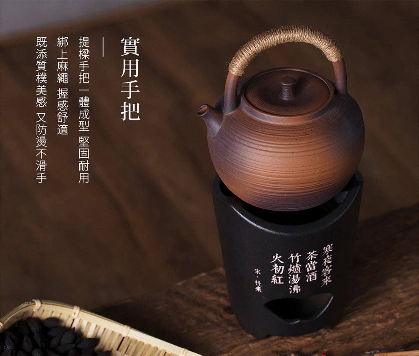 | 注意事項 | 1. 新壺需要養壺,用白粥或粥水煮後浸泡8小時,收縮陶壺毛細孔,避免滲水。 2. 陶壺蓄熱好建議使用中小火加熱,可以節省能源,受熱均勻。 3. 使用時避免碰撞,用完用海綿或是軟布清洗。 4. 清洗乾淨後置於通風良好處,壺身倒置,自然風乾。 5. 收納時需確認壺內內濕氣已全去除。 6. 建議壺中水7~8分滿,避免水沸溢出。 7. 若有水漬茶漬,用檸檬汁或食醋清洗。 8. 若產生了嚴重茶漬染色,不能完全除去,可使用牙膏或小蘇打去污。 9. 請溫柔保器皿,勿使用鋼絲球或研磨劑等,粗糙材質清洗陶瓷。 |