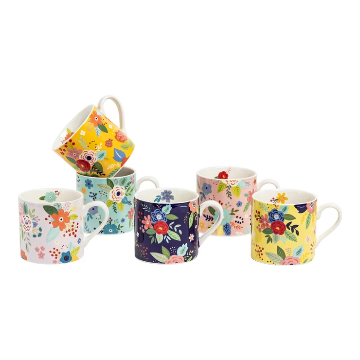 Over & Back Floral Mugs 414 ml X 6-Piece Set