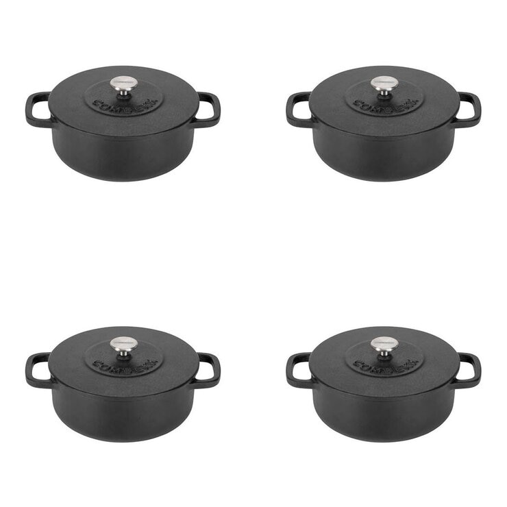 COMBEKK Dutch Oven Cast Iron Pot with Knob Lid 12 cm X 8-Piece Set Black