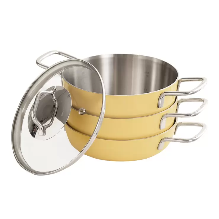 Edelkochen Stainless Steel Pot with Glass Lid 4-Piece Set Yellow