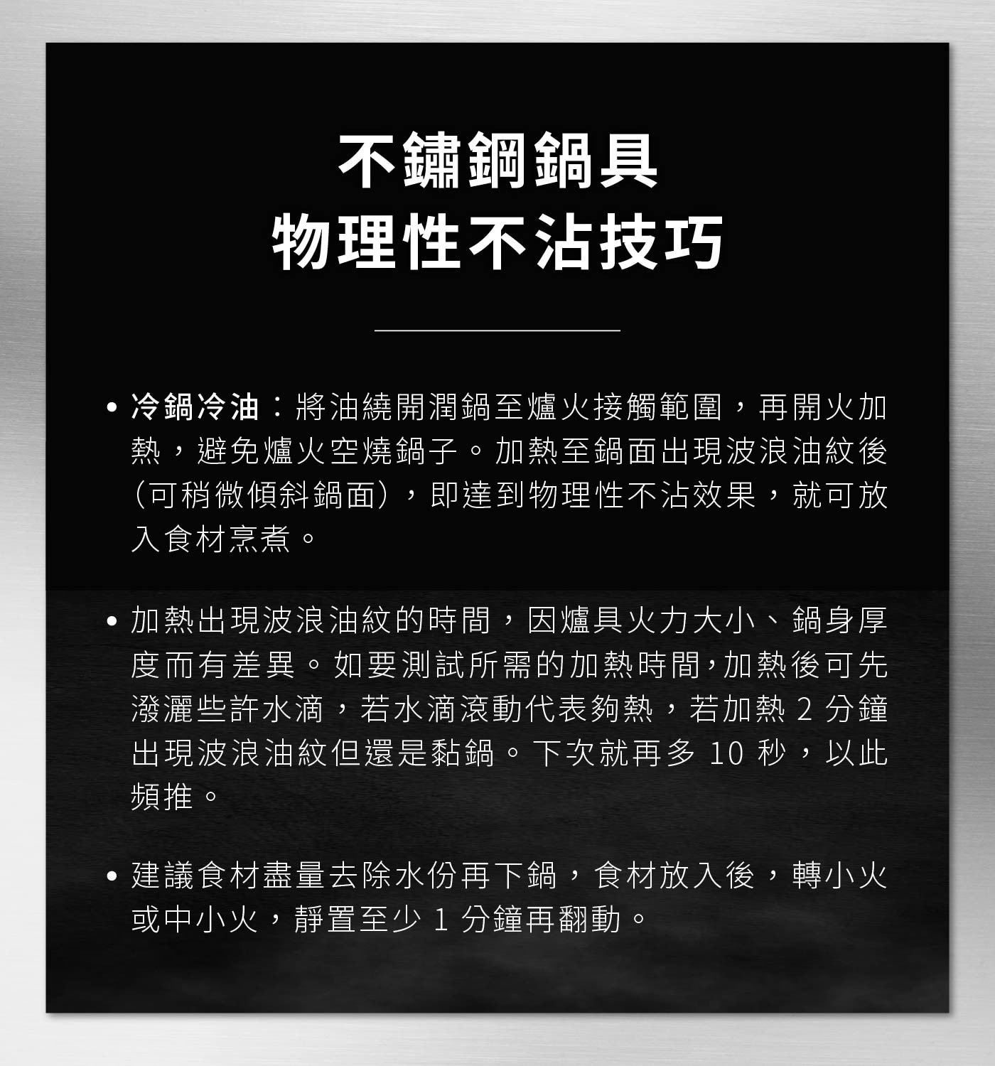 - 物理性不沾特性,特別適合高溫香煎肉排